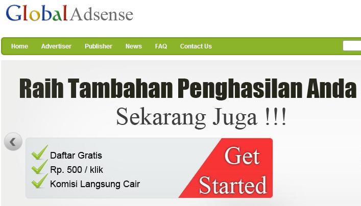 Globaladsense sebagai Portal Iklan Pay Per Click mungkin dapat saya katakan sebagai salah satu Adsense Indonesia terbaik. Disni saya sarankan buat anda para blogger dan webmaster untuk menjadikan situs anda sebagai mesin uang bersama Global Adsense. Daftar gratis, pasang kode, lalu dapatkan komisi dari Global Adsense. Join bersama puluhan ribu publisher lainnya dalam jaringan Global Adsense Advertiser dan anda akan mendapat penghasilan dari tiap klik yang di peroleh